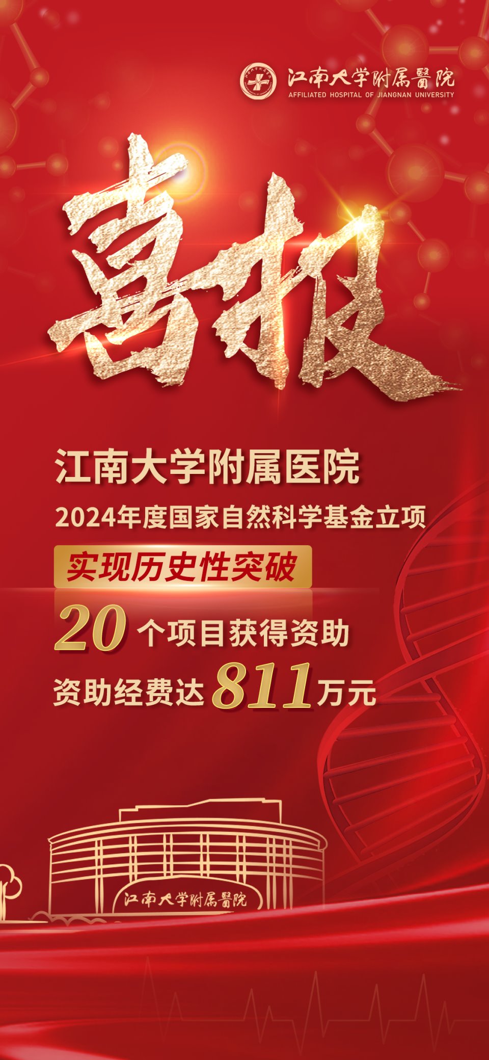 2024年8月23日,国家自然科学基金委员会正式公布了2024年度国家自然科学基金申请项目的评审结果,樱桃视频 获历史性突破,共有20个项目成功获得资助,其中包括青年项目9项,面上项目11项,资助经费高达811万元,居无锡市医院榜首。