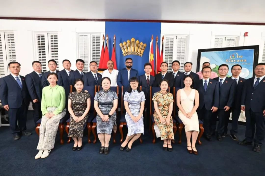 圭亚那当地时间8月28日,中国(江苏)第19期援圭亚那医疗队应邀来到圭亚那乔治敦总统府,参加由圭亚那总统伊尔凡·阿里专门为中国医疗队准备的授勋晚宴。