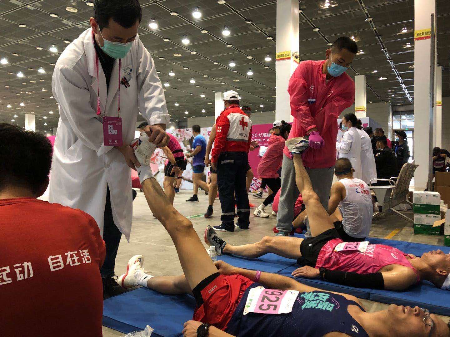 胸心外科医生王振军为运动员放松。