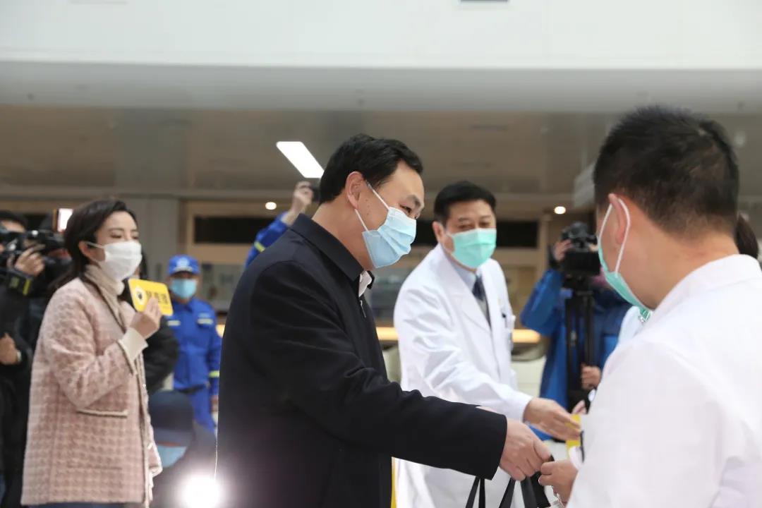 市卫生健康委党委副书记王新华、市妇联副主席(挂职)朱芳一行为抗疫医护人员送上慰问品,感谢他们不惧风险、勇往直前、冲在抗疫最前沿,为保障人民身体健康和生命安全作出了重要贡献。