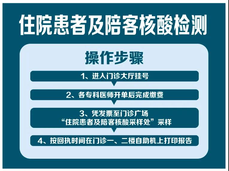 自2月1日起,南院区在原发热门诊核酸采样处及“返乡人员核酸检测处”的基础上,增设“住院患者及陪护人员核酸检测处”,北院区设核酸检测点一处,均在门诊大厅外侧广场。