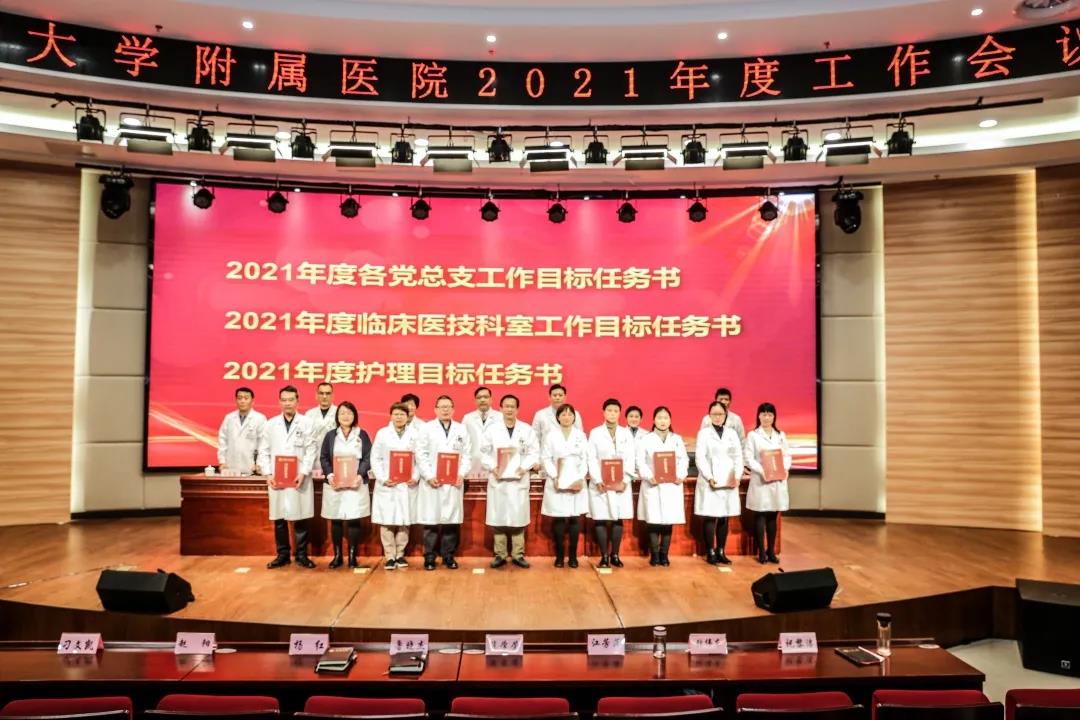 在多功能厅举行2021年度工作会议,总结成绩,开局布棋。党委书记笪学荣,党委副书记、院长鲁晓杰以及全体院领导出席会议。医院中层干部、二级科主任、护士长及各级助理管理干部共同分享丰硕成果,携手展望美好前景。同时为满足疫情防控要求,会议以“主会场+分会场网络直播视频会议”的形式召开。党委副书记、副院长江芳萍主持会议。